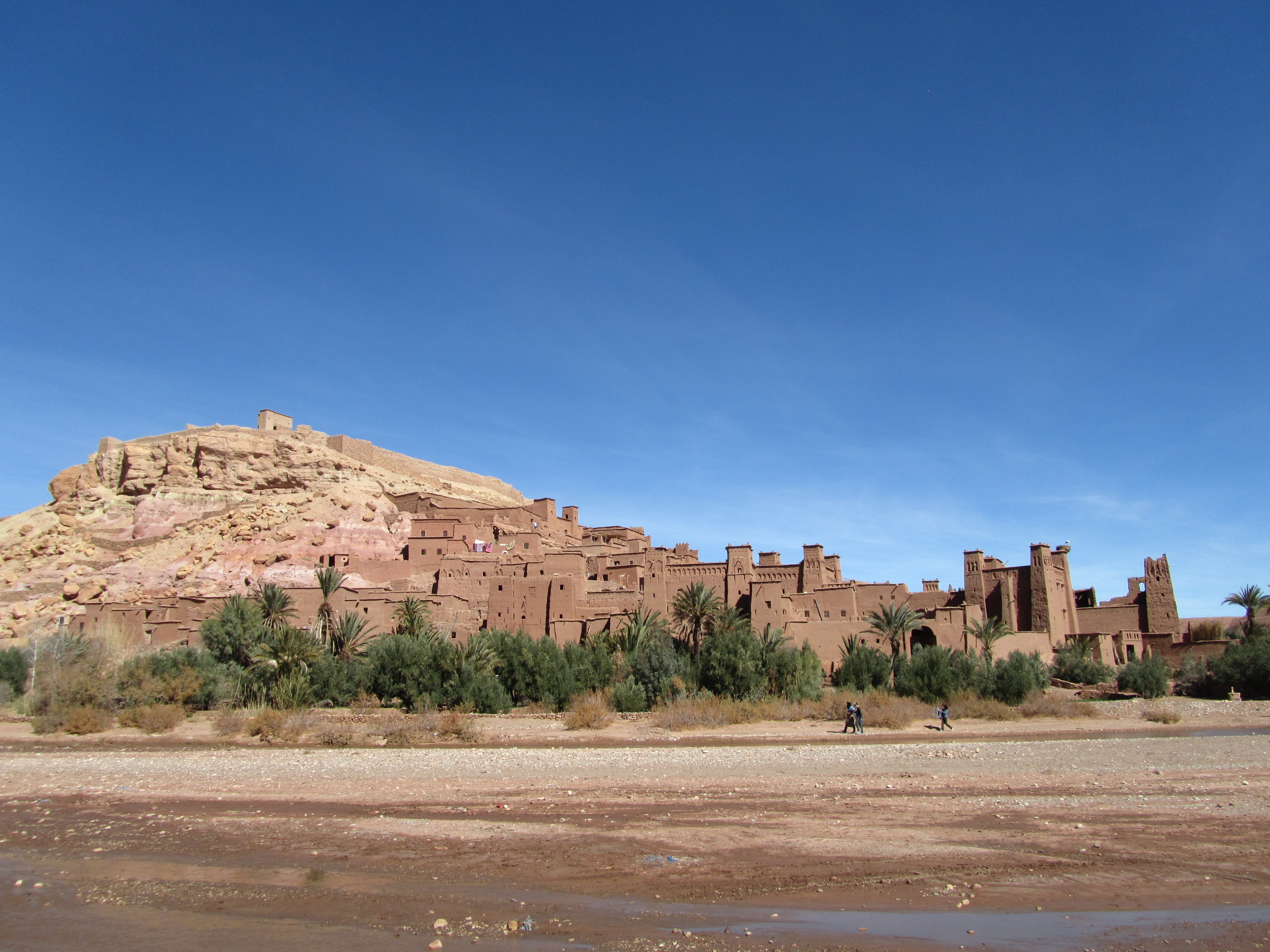 Trên đường đi, chúng tôi có ghé qua làng Aït Benhaddou,nơi từng là điểm dừng chân của những lữ hành phương Nam đi lên phương Bắc. Aït Benhaddou nằm trong một ốc đảo, bên cạnh dòng suối nhỏ. Bao bọc xung quanh là những vùng đồi trọc cằn cỗi trải dài cho đến tận chân núi Atlas.